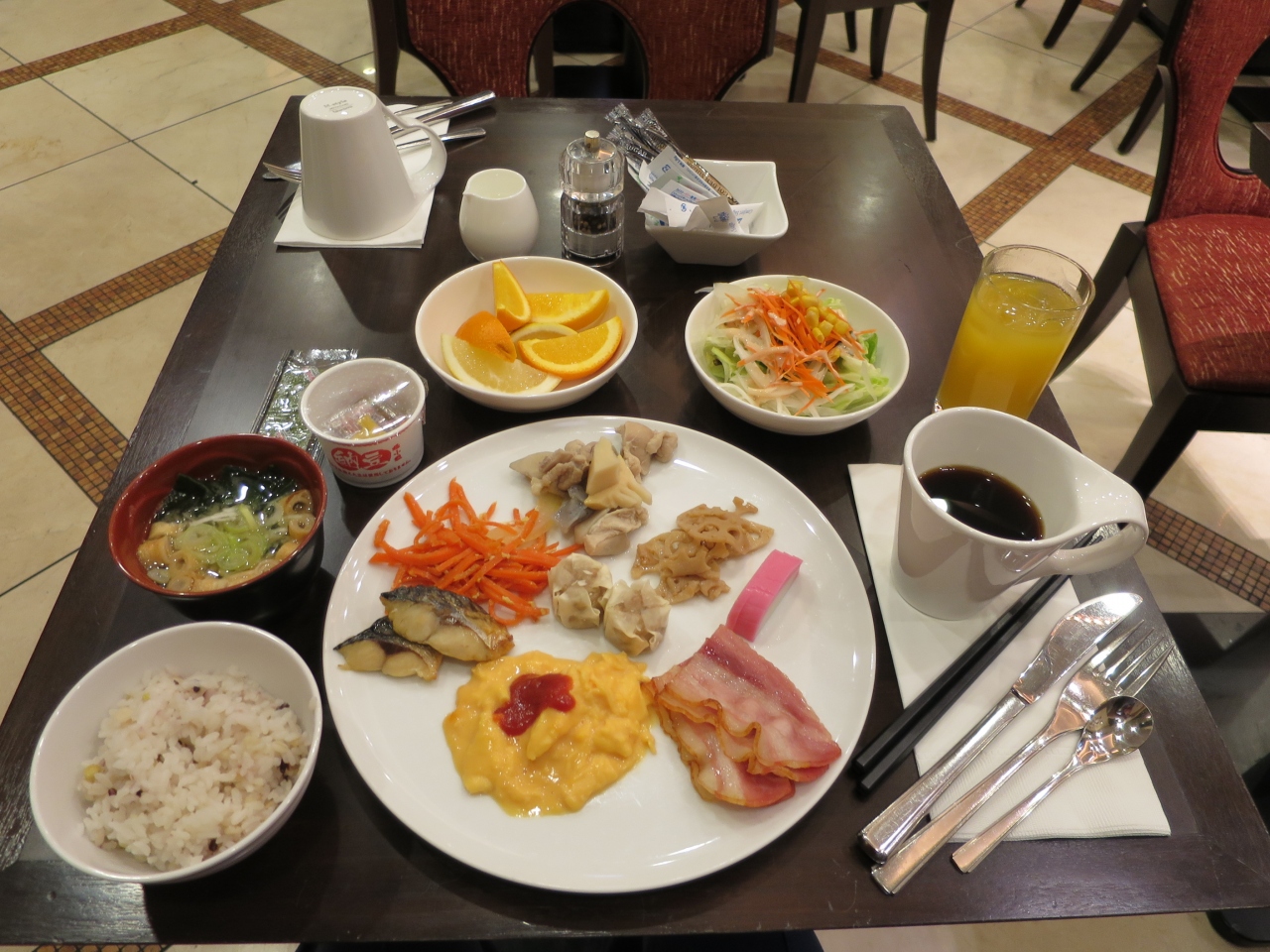 朝食は、ホテルのレストランでバイキングでした。ヒルトングループのホテルですから料理のメニューは、充実していました。とても美味しかったでよ~!