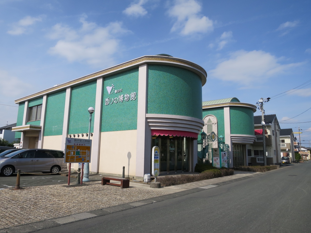 香りの博物館は、JR豊田町駅から徒歩圏内です。車で来られる方は、駐車場も十分あるので大丈夫です。1階は、無料展示エリア、2階が有料エリアとなっています。