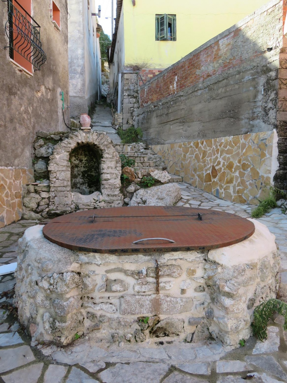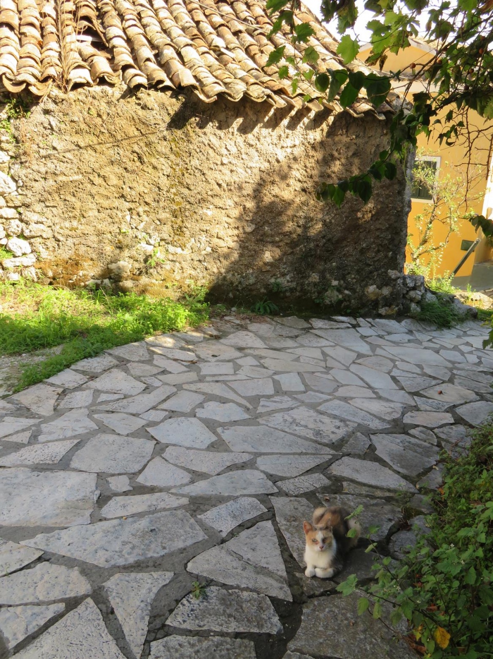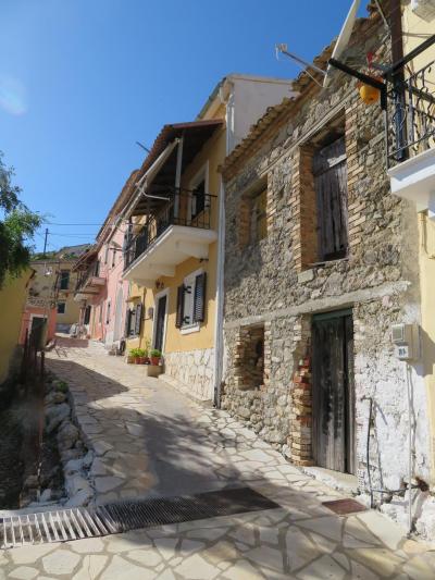 その眺めだけではなく、15世紀にはヴェネツィア共和国の領土となったケルキラ島なので、石畳の村内には石造りの古民家のほか、ヴェネツィア風のカラフルな教会や民家も混在しているのが絵になります。