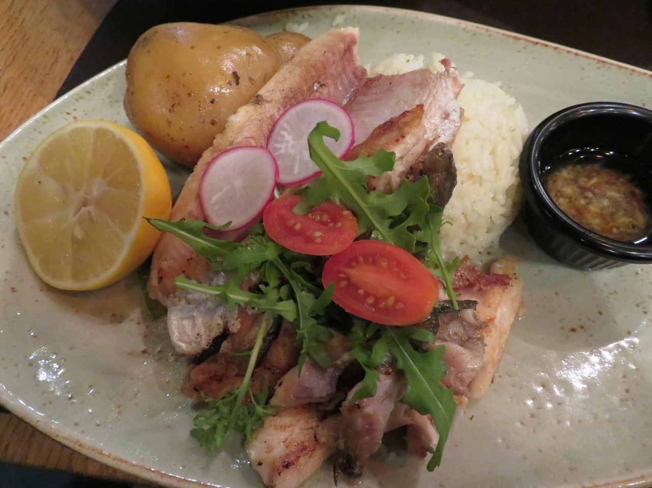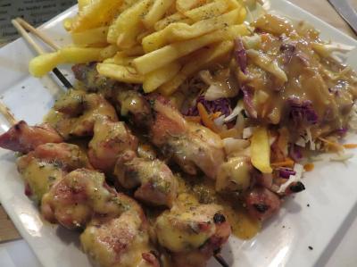 鶏肉のスブラキ自体もいい焼き加減だったのに、上にかけたオリジナルのソースが甘かったのは惜しかった!- 旅行時期
