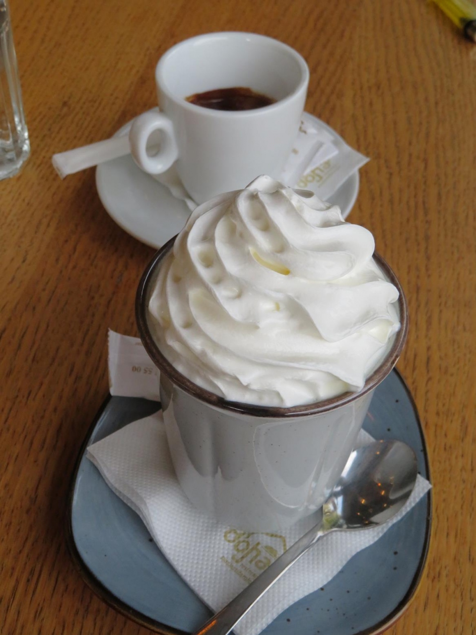 コーヒー休憩でも利用したんですが、カプチーノを頼むとインスタントの甘~いコーヒーの上にこれでもか!と言うほどの量のクリームを絞って出されます。
