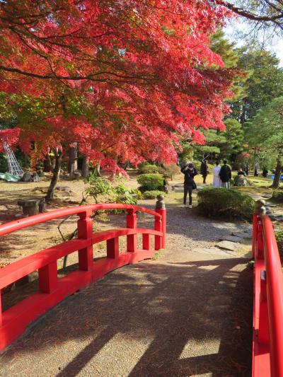 秋景色をバックに結婚記念写真を撮っているカップルもいて、落ち着いた庭園の佇まいに若々しい華やぎを添えていたのもよし。