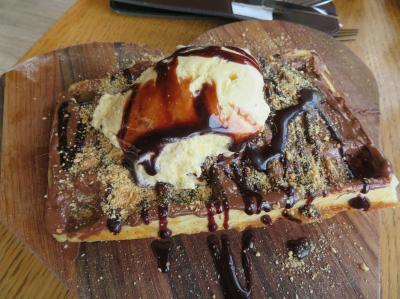 ワッフルはアイスクリームも付いて来て、ヌテラやチョコレートソースもたっぷり。