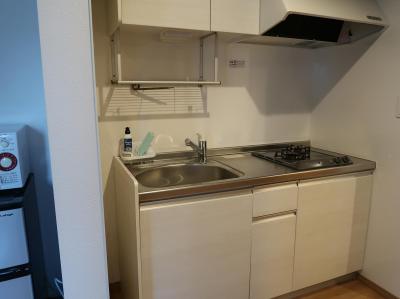 - 適度な広さがあるお部屋はシンプル&清潔。簡易キッチン、レンジなども揃っています。