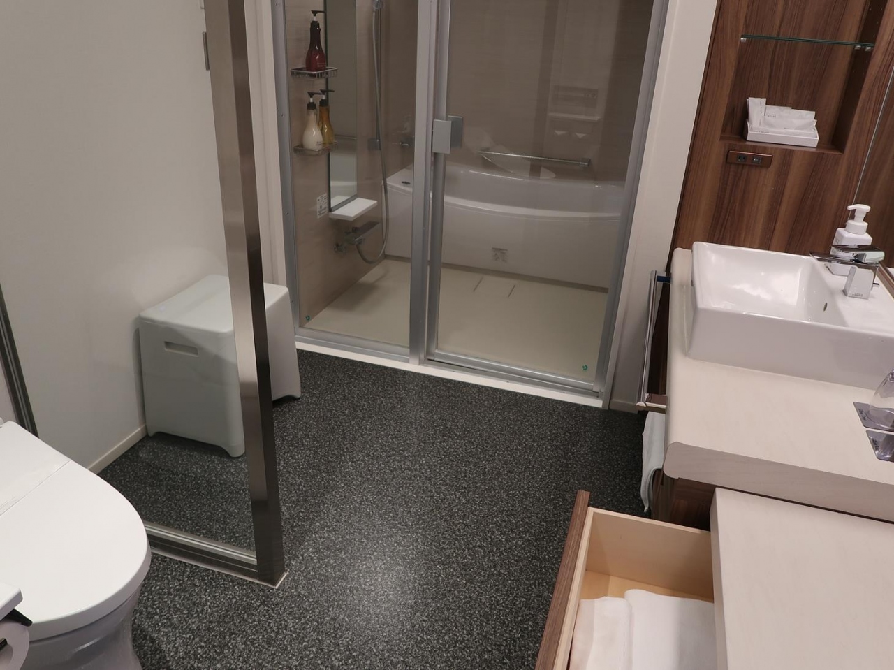 浴室も広々していて、シャワーは水圧の高いお湯がたっぷり出て最高の気分!