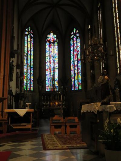ステンドグラスの絵柄や色遣いが、ずいぶん新しい感覚なのはちょっと意外でした。