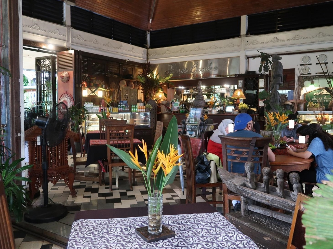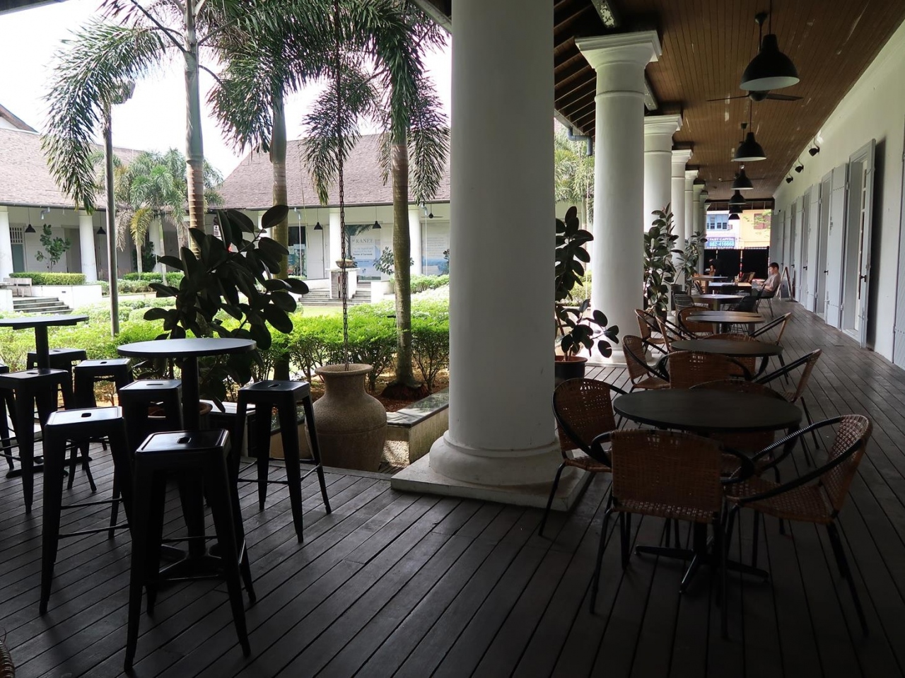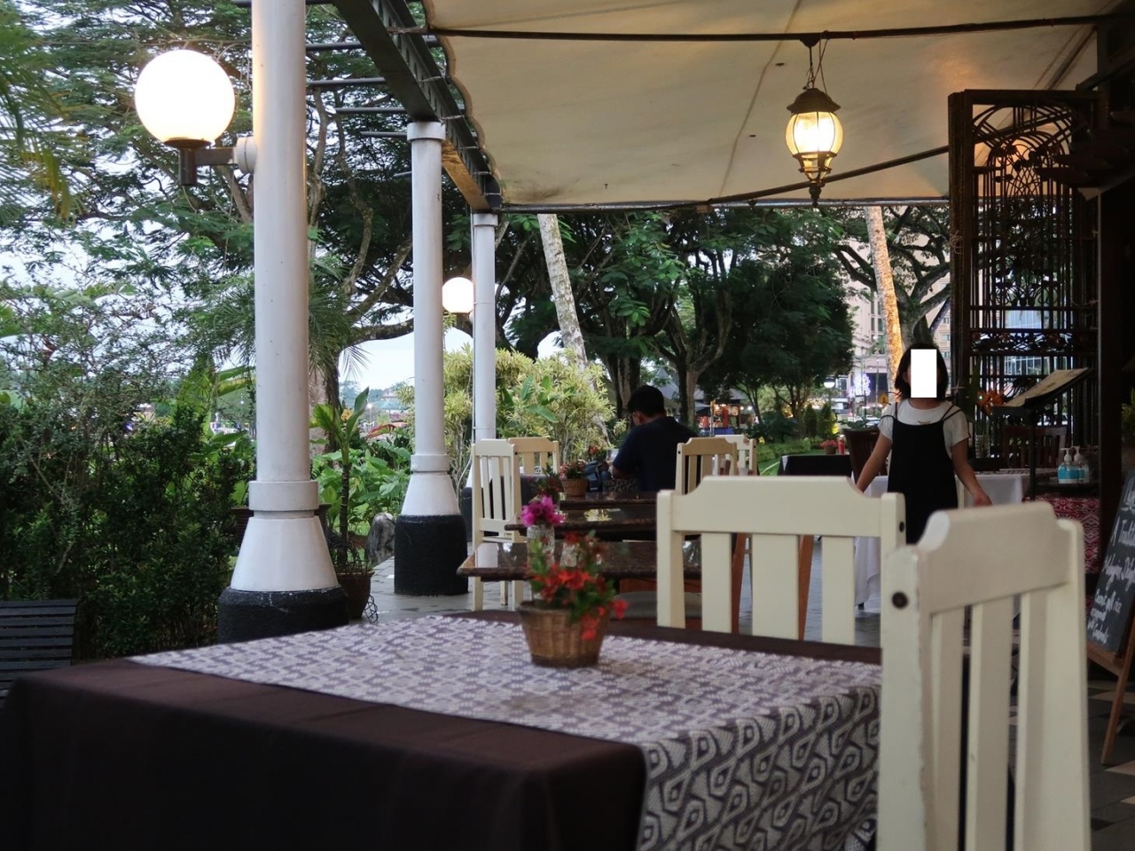 半露天の洒落たインテリアのお店。食事はマレー料理と西洋料理が半々