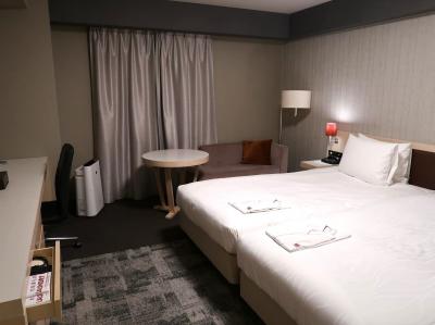 お部屋に行ってみたところ、ツインのシングルユースにしてもらったようで、ありがたく広々と使わせていただきました。