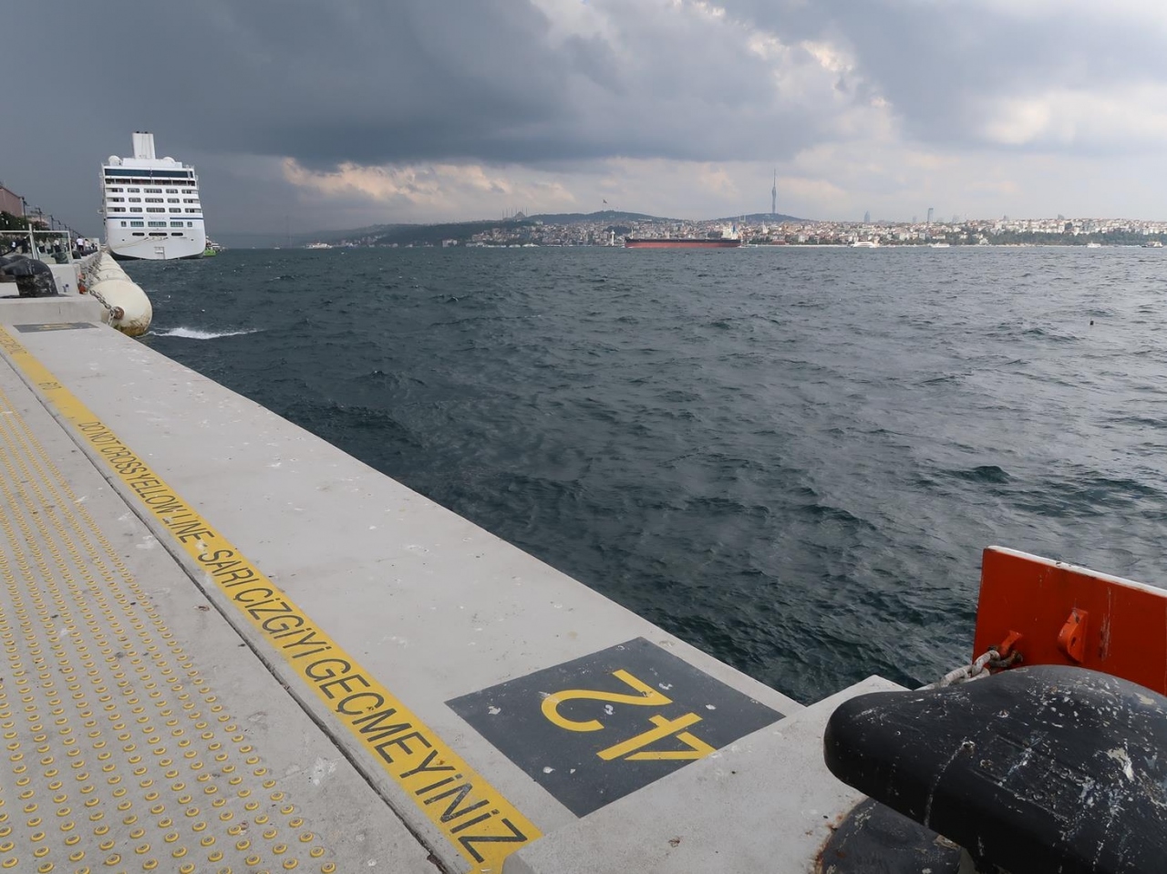 お天気が良ければ、ボスポラス海峡や金角湾を挟んだ対岸のアジア側、旧市街地側の陸地が見えたり、クルーズ船が入っていれば、その脇を通って散策も楽しめますよ。