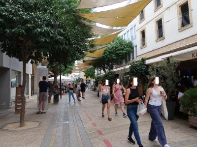 プロムナードからちょっとだけ外れた立地のお店で、パフォス考古学公園入口からも近く、テラス席はいつもお客で満杯。