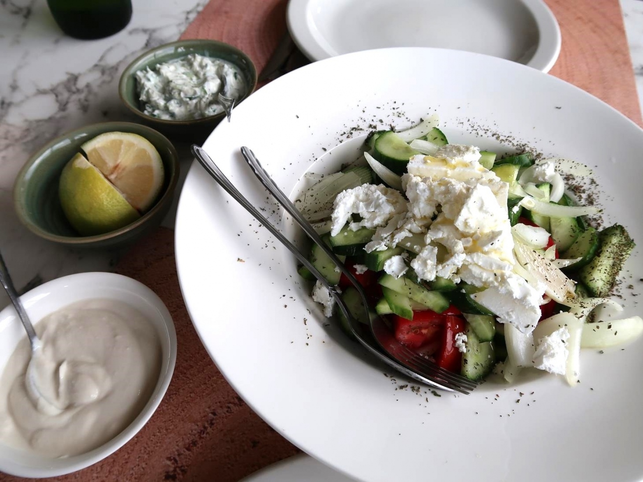 トロードス地方の山小屋風民泊に泊った私たちは二晩続けてここで夕食にして、フェタ・チーズが乗ったギリシア風サラダ、ムサカ(ナス+ミートソース+ジャガイモの重ね焼き)、カラマリ、ラム・チョップ、近くの渓流で獲れたマスのグリルなどを楽しみました。