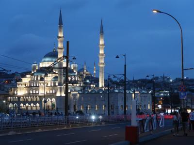 上層から見るモスクや桟橋の夕景・夜景が見事だったり、下層のレストラン街で焼きサバサンドなどの食事をするのもいい思い出になるので、滞在中一度は歩いて渡ってみるといいですよ。