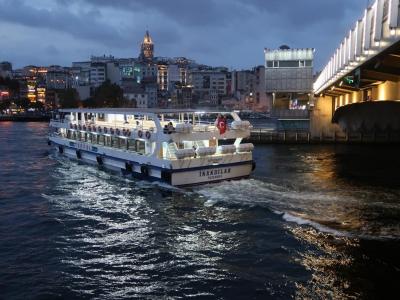 ガラタ橋の旧市街地側桟橋(エミノニュ桟橋)から出ているボスポラス海峡クルーズ船。
