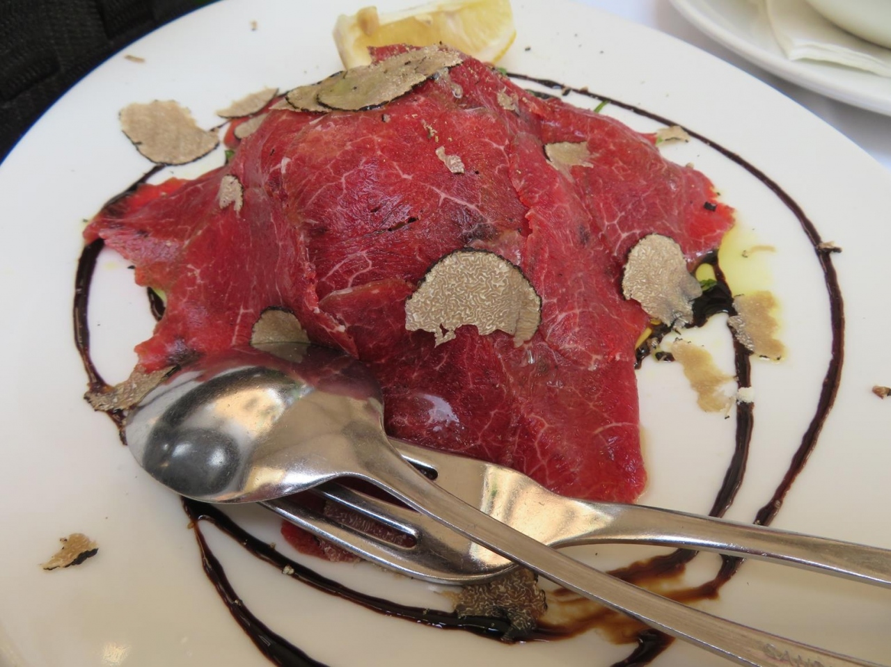 カルパッチョにはトリュフがかけられていてぜいたくな気分。