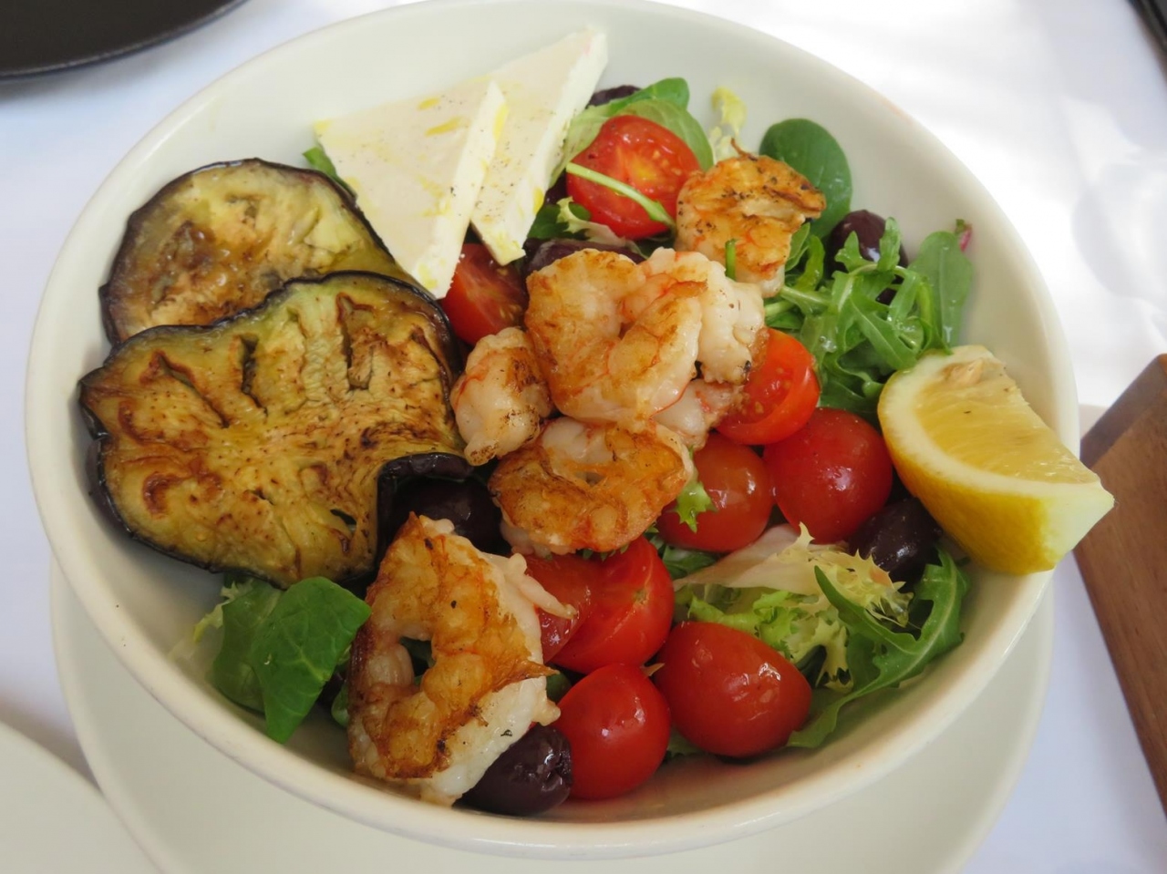 地中海風サラダの炙ったエビの香ばしさと新鮮な野菜の取り合わせが抜群!