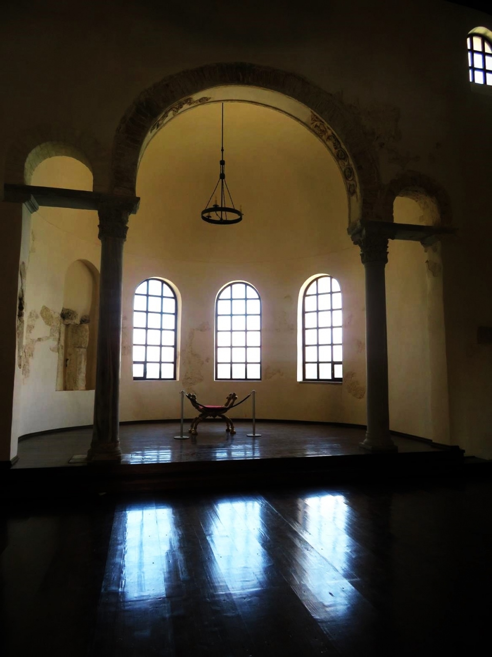 遺構の壁や床に今も残るモザイク模様と、今もしっかりした造りのエウフラシウス聖堂内の壁のきらびやかなモザイクの対比が印象に残る場所だと思います。