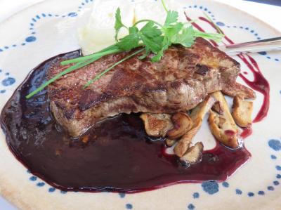 ステーキの肉質、焼き具合もよく、パスタの食感、ソースの味わいも絶妙で、二人とも大満足。
