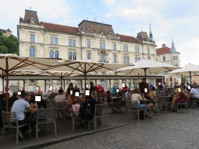 その名の由来は19世紀のスロベニアの詩人フランツェ・プレシェーレンで、その大きな像も広場の片隅に立っています。