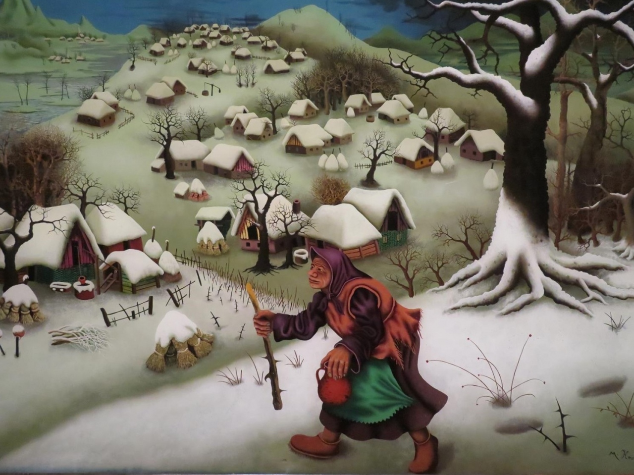 日本昔話的色調と絵柄の作品があるかと思えば、ピーター・ブリューゲル調の絵柄のものなど作風はいろいろで、ナイーヴアートの奥深さが感じ取れました。- 旅行時期