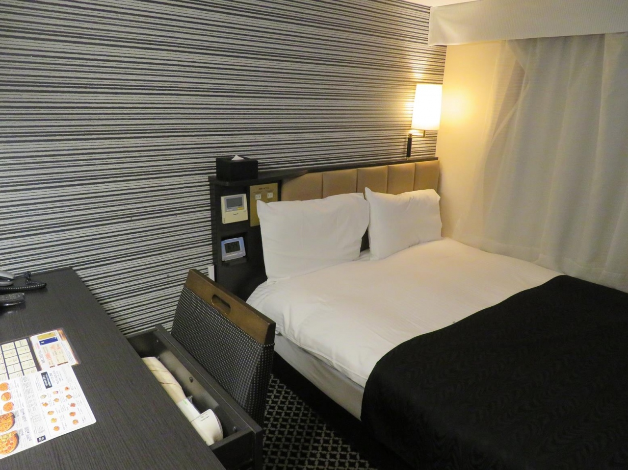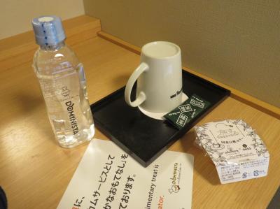 お部屋の方はちょっと暗い感じでしたが、旅するスイーツがサービスで冷蔵庫に入っていたり、夜鳴きそばやアイスなどの無料サービスは、他のドーミーイン同様にうれしいおもてなしでした。