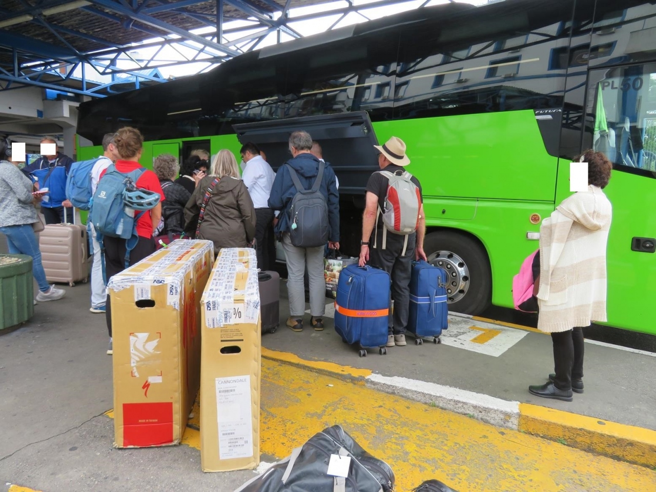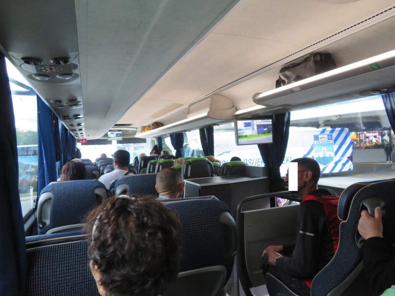私のように席予約なしの紙のチケットのほか、ネットで席予約もして来るお客さんもいて、出発前に「私の席はどこ?」などとちょっとした混乱もありましたが、時間通りの発車で途中トイレ休憩もあり、2時間ちょっとでリュブリャナの駅前到着でした。