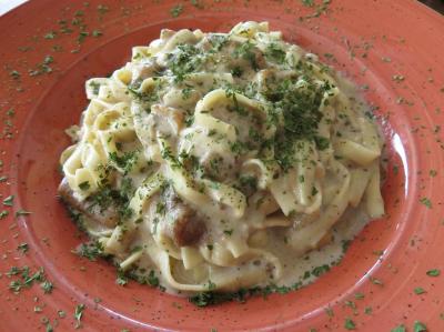 - キノコのクリームソース・パスタと茹でソーセージがよかったです。