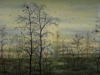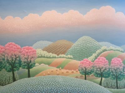 これは、ガラスの裏側から油絵具で自然などを繊細に描くという手法の絵画。