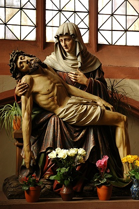 ステンドグラスは派手ではありませんが、個人的には画像のピエタが印象的だと思います。