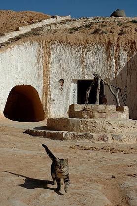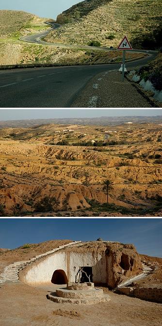 エル・ジェム方面からスファクス、ガベスの間は単調な風景ですが、ガベスからマトマタへの107号線+マトマタ周辺の104号線沿道の景色は一転。乾いた丘陵地帯の風景や、この辺で多く見られる穴居住居が待っています。画像をクリックすると拡大表示されます。