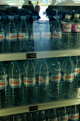メーカーによって多少値段が違いますが、画像のSABRINEの持ち歩きしやすい500ml入りペットボトルが0.4ディナール程度。1500ml入りは0.55ディナール位なので、こちらは補充用に常に車の中にどうぞ。この画像にも出ていますが、ふたが取れそうになっているのも混じっているので、買う前にご確認を。