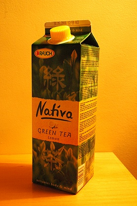 私が気付いた限りでは、高速道路上のサービスエリアでしか売っていなかったのですが、この画像のRAUCHというメーカーの緑茶を見かけたらお試しください。2ディナール位です。レモン風味で甘さが少なくさわやかな味。冷えている時がおいしいです。