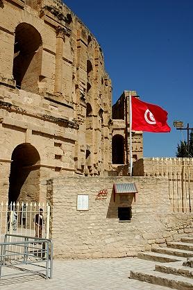 スース方面からだと、先にご紹介した駐車場から闘技場を取り巻く道を時計回りとは逆に行くと、画像に出ている入り口とチケット売り場があります。