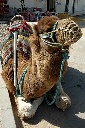 別のラクダの写真を撮った時には相手も気付かなかったようですが、この写真を撮った時には周りに誰もいなかったのに、シャッターを切った途端にラクダの主が物陰から現れたのにはびっくり。結局1ディナール払いました。- 旅行時期
