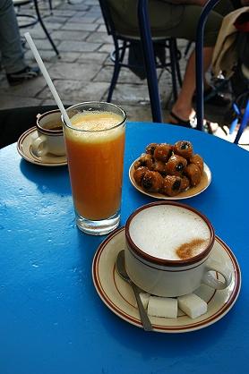 チュニジアではミント・ティーやひまわりの種が入ったお茶がよく出されますが、コーヒー党の人も大丈夫。私たちが行った限りのカフェや食堂、レストランではどこでもエスプレッソやカプチーノも楽しめました。1杯1ディナール台。お店によって味の当たり外れがあるのはチュニジアに限ったことではないので、懲りずにあちこちで試してみてくださいね。