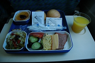 お昼を挟んだフライトでしたが、飛行時間が短いこともあり、機内食は往きも帰りも画像のようにあっさり。全部冷たい食事なのでちょっとがっかり。- 旅行時期