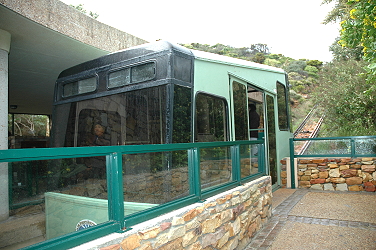 駐車場からこんな電車で登ります。普通の体力がある人なら充分歩いて行けると思いますが、私たちが行った時には雨が降ったり止んだりのお天気だったので利用してみました。数分おきに出発。往復でR31と言う半端な値段。片道ならこれも半端なR21と言う値段設定です。
