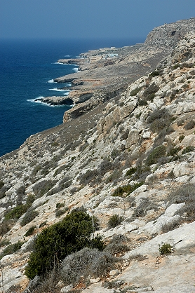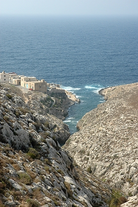 ヴァレッタのシティー・ゲートそばのバス・ターミナルから38番や138番の公共のバスで行くと、0・5LMで30分ほど。舟が出る所までは、バスから降りて10分ほど丘を降りて行かなくてはなりません。≪青の洞窟≫へ行く舟の料金は一人2.5LM。