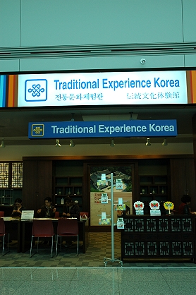 トランジットツアーも各種ありますが、そちらは乗り換え時間5時間以上からの利用。半端な時間があれば、ゲート40番そばのこの韓国文化体験館へどうぞ。団扇への絵付け、色塗り、紐細工などが体験できます。ある程度の年齢以上のお子さん連れにはちょうどいいと思います。