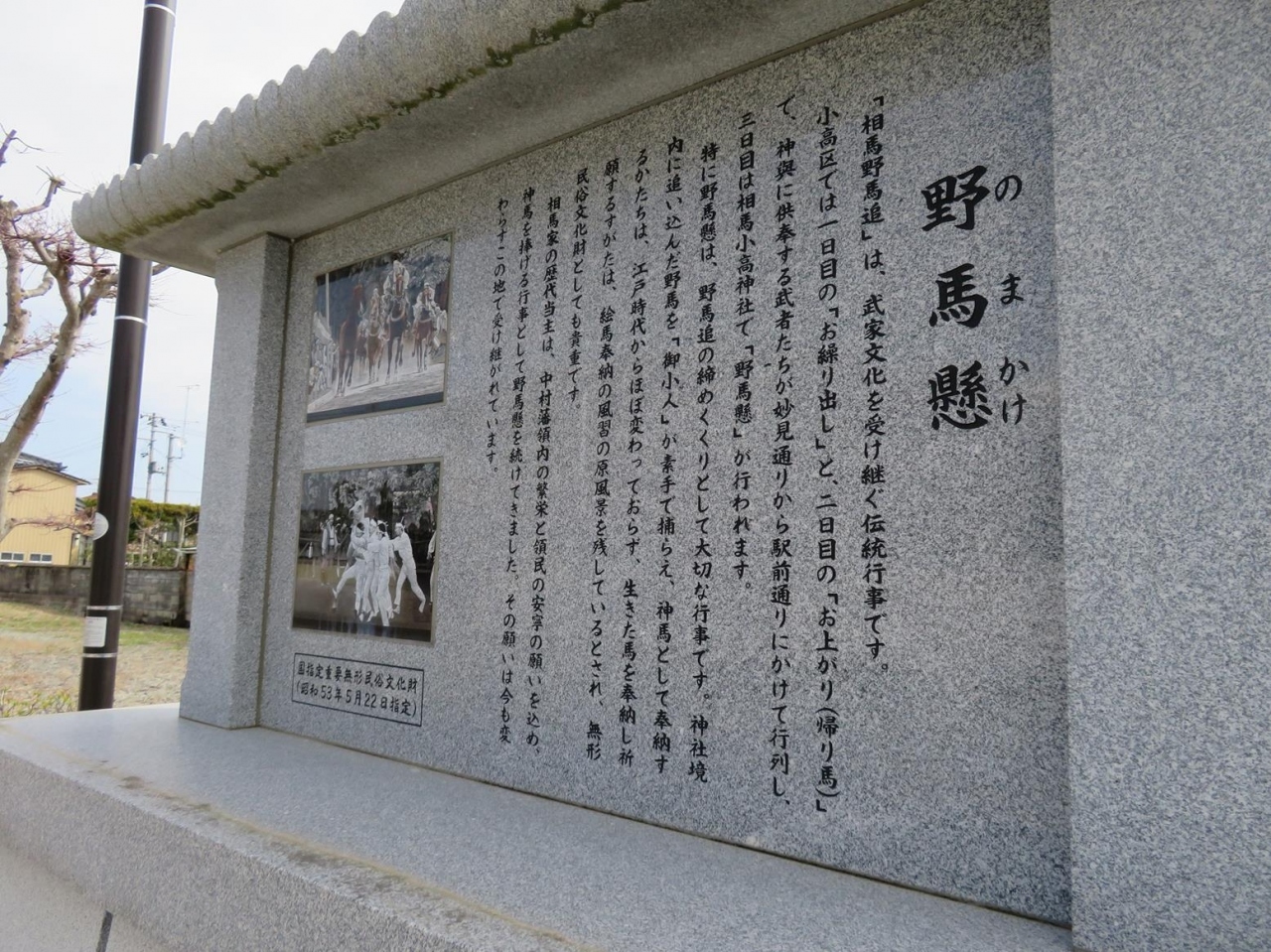 相馬小高神社(そうま・おだか・じんじゃ)は、相馬野馬追(そうま・のまおい)の祭りの内、野馬懸(のまかけ)の祭場となっている神社。