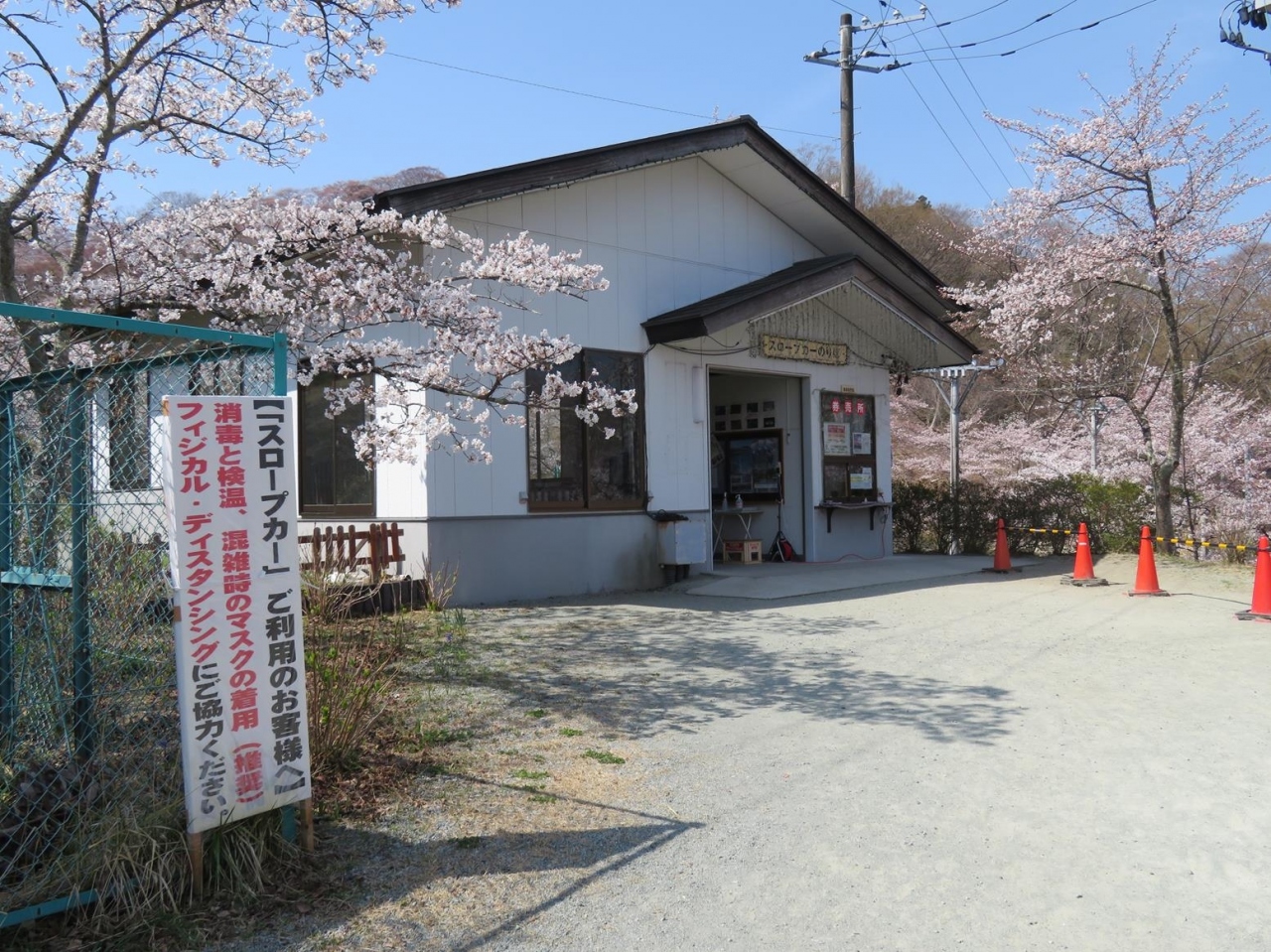 船岡城址公園スロープカーは、船岡城址公園の中腹にある≪さくらの里≫近くから出ている小型のモノレール。