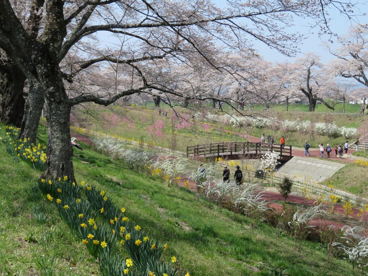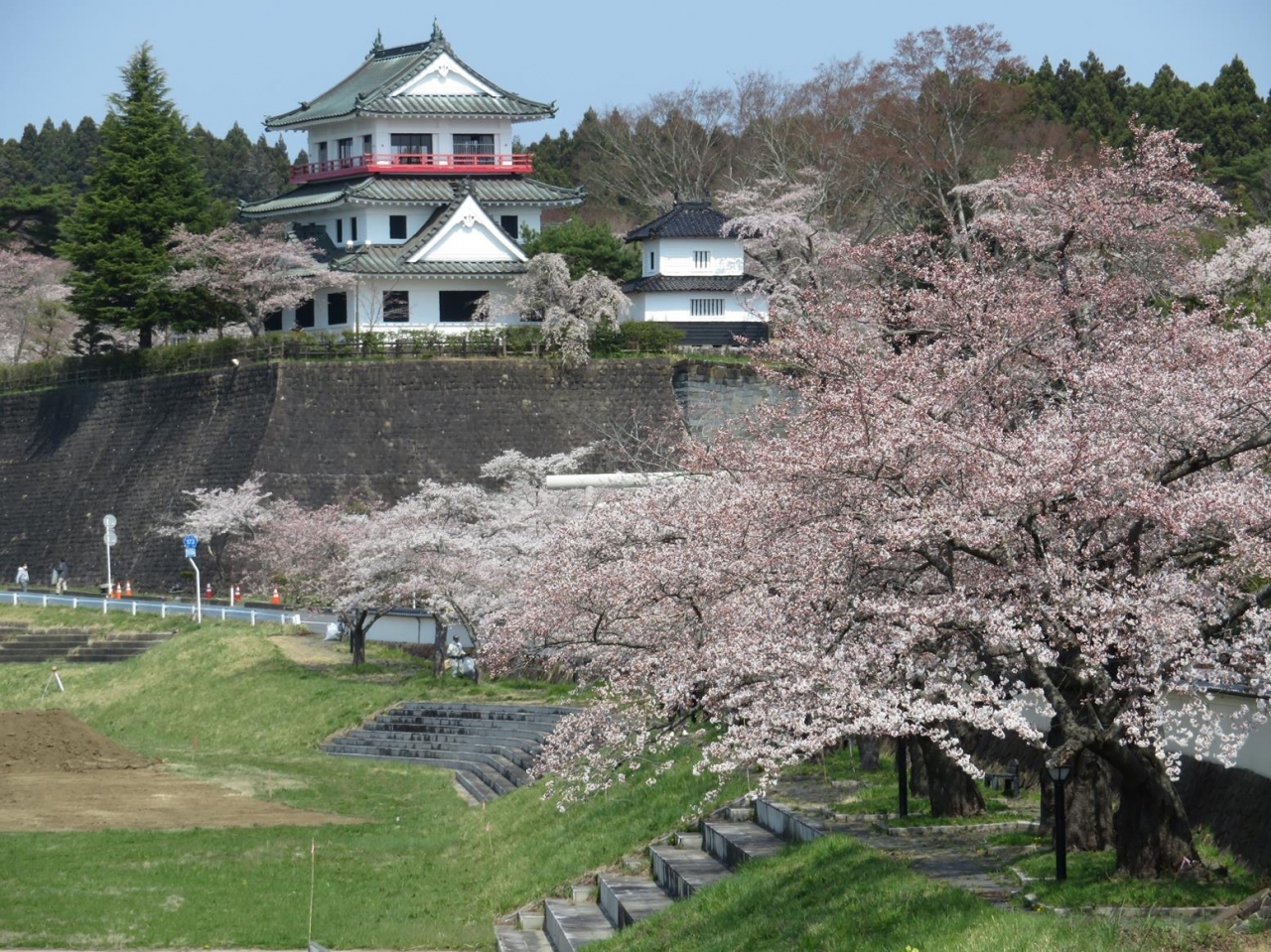 公園内や江合川沿いに桜の木がたくさんあり、次に来るなら桜の時期!と決め、桜前線の北上が速かった2023年の今回は4月初めに訪れてみて大正解!