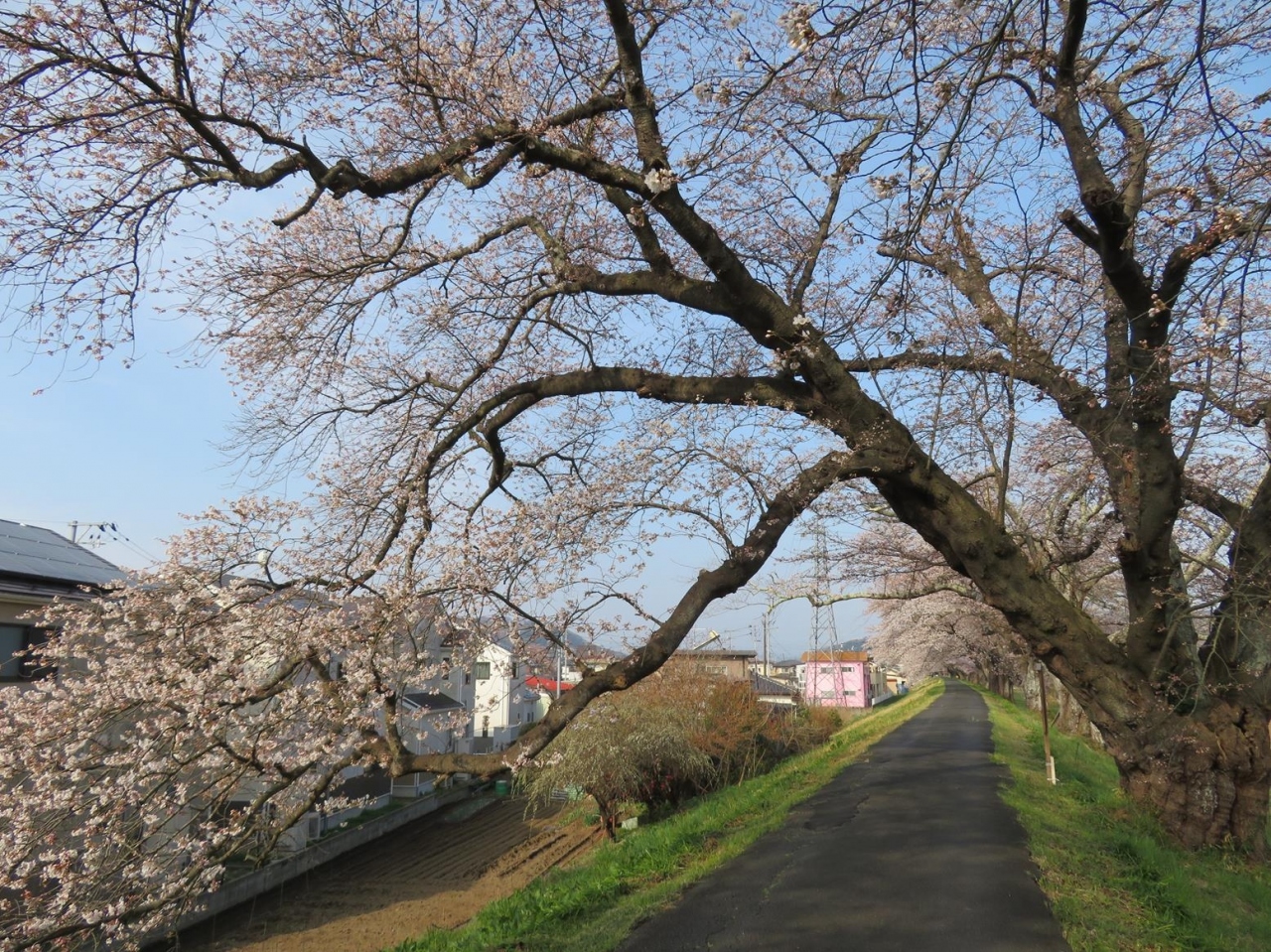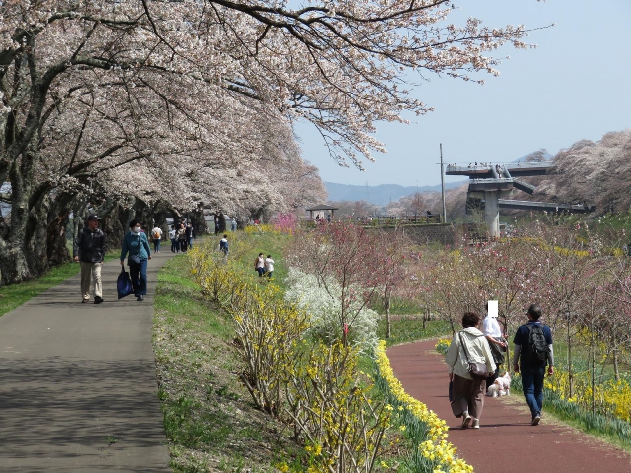 秋のコスモスが有名なんですが、春の桜の季節もきれいだと聞いて、ウォーキングを兼ねて行ってみました。