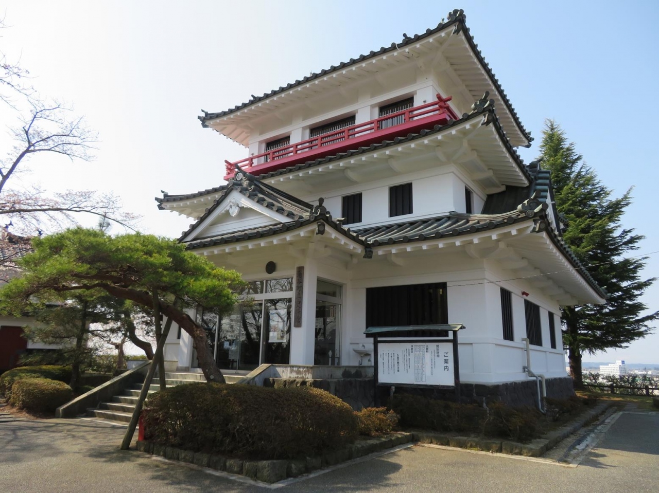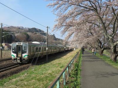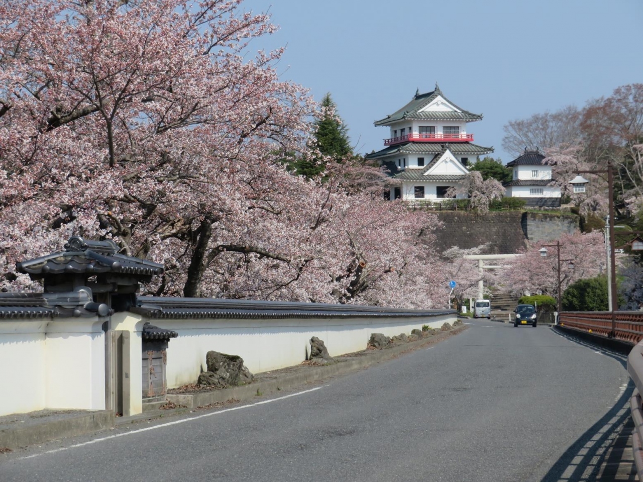 境内の桜のほか、麓を流れる小高川沿いの咲きかけの桜並木の風情も楽しんでみました。- 旅行時期