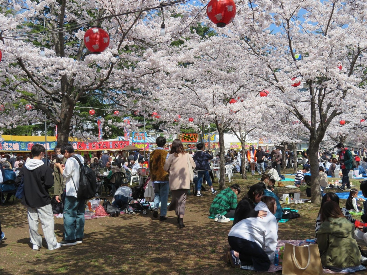 コロナ禍で封じられていたお花見の楽しみも、2023年には解禁され、屋台も多数並び、シート持参でやって来る花見客も繰り出して昼間から大賑わいでした。