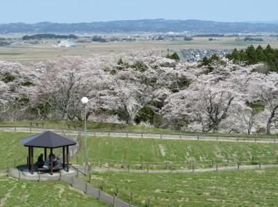 JR石巻線の涌谷駅(わくや・えき)から、江合川(えあいがわ)に架かる涌谷大橋を渡って徒歩20分ほどの高台にある涌谷町(わくやちょう)の城山公園。