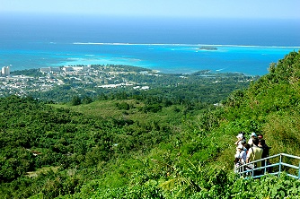 サイパン島のほぼ中にある473mのタポチョ山頂からの眺めは、お天気がよければ画像のように島の緑や海の青が眼下に広がります。