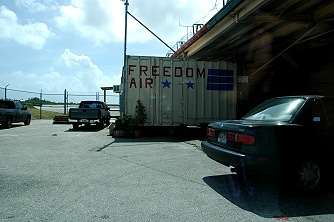 場所はアントニオ B.ウォン・パット・グアム国際空港のそば。空港ビルを正面にして立つと、右手に貨物ターミナルがあり、その一番右端。画像のようなコンテナを改造したオフィスがありました。(^^ゞ
