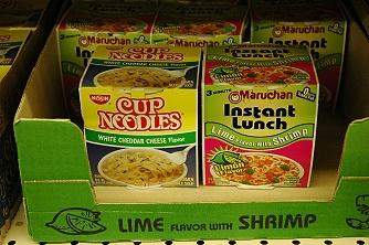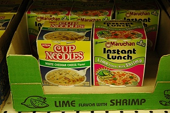 アガニア地区にあるアガニア・ショッピング・センターのような地元の人御用達のスーパーでは、ご当地カップ麺も売られています。C級グルメを自認する私は、グアムでも味見してみました。