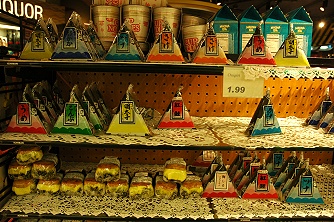 Tシャツなどの衣料、お土産にもなる雑貨・食品などのほかには、島巡りの際のお弁当になる食品、飲み物が置いてあります。