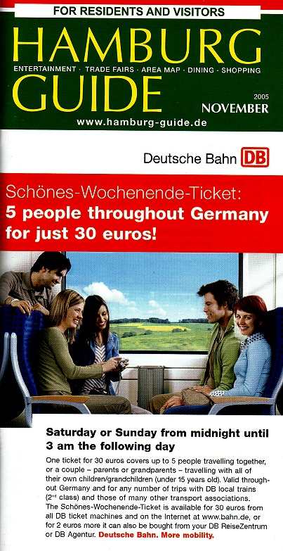 ターンテーブルの近くの棚には観光パンフなどが置いてありますが、ほとんどがドイツ語。英語版が欲しい方はとりあえずこの≪HAMBURG GUIDE≫をもらっておきましょう。月刊なので、表紙の絵柄は毎月変わると思います。